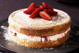 Leave your cake to cool for a few minutes then remove from the tin. When really cool, slice into two. Wash and hull your strawberries. Whip your cream, then separate into two bowls. With a hand blender whip half your strawberries into one half of the cream, until it turns a lovely rosy pink. Spread on the lower half of your cake. Place the top of the cake back on. Spread the rest of your whipped cream on the top of the sugar free cake. Cut each of your remaining strawberries in half and position on top of the cream to decorate.